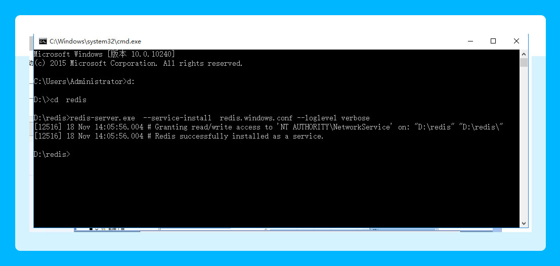 打开命令行: 进入redis目录执行 redis-server.exe --service-install redis.windows.conf --loglevel verbose