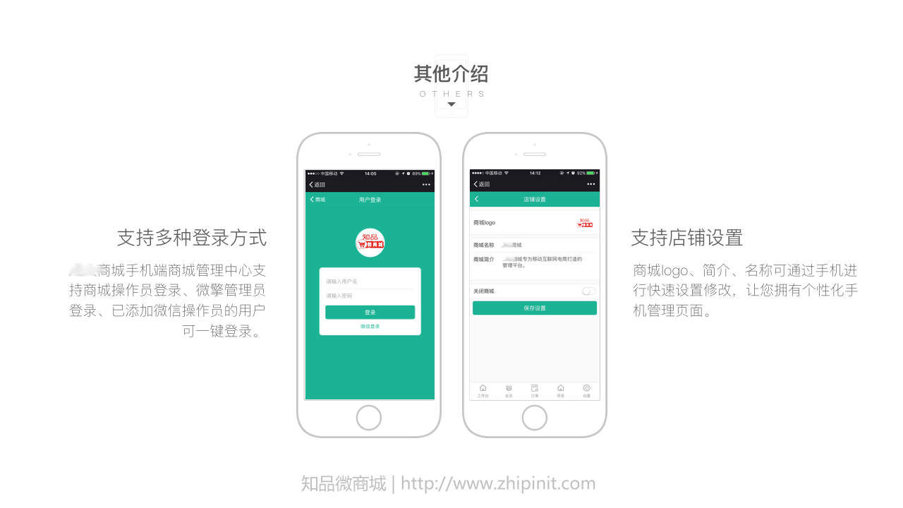 知品微商城之手机端商家管理中心设置