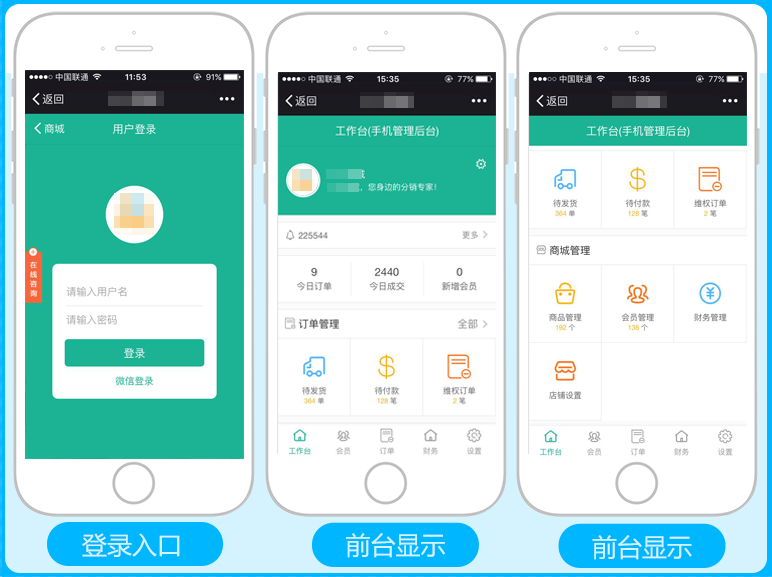 2、微信登录:权限管理-添加操作员,操作员绑定微信,即可用微信登录。