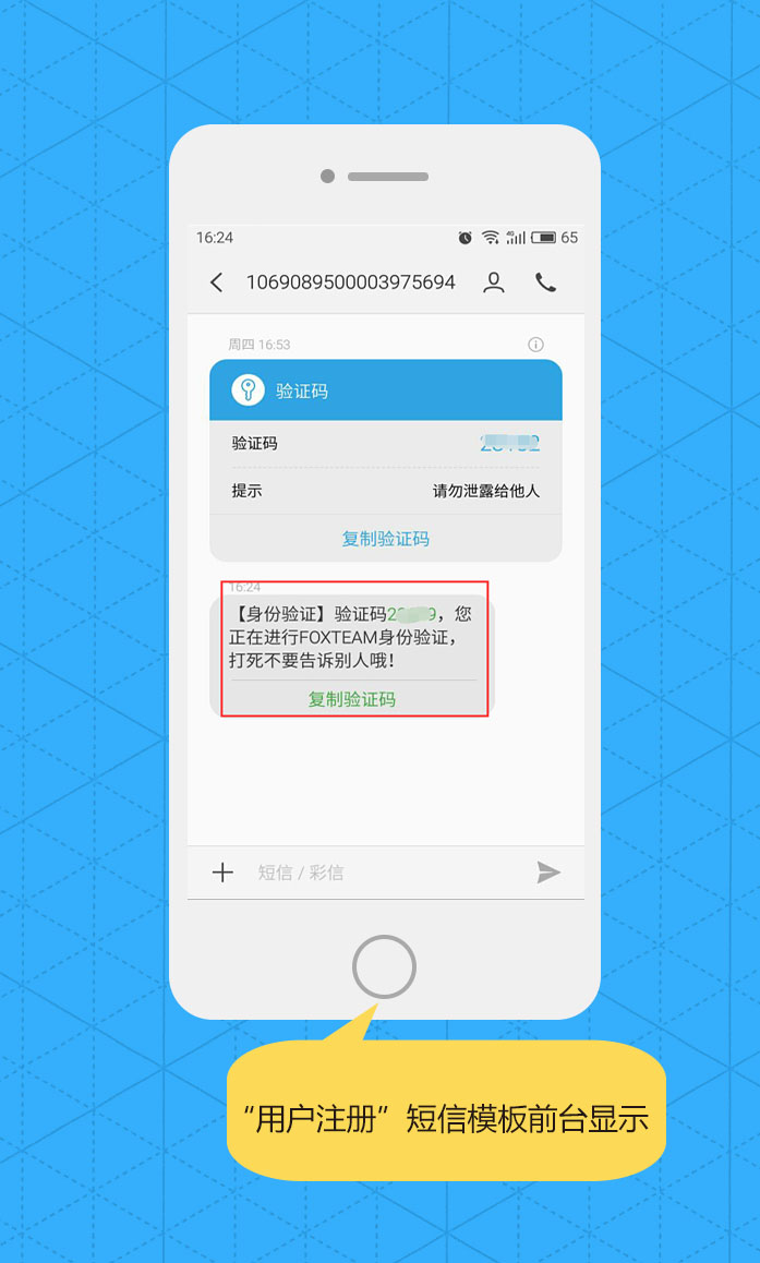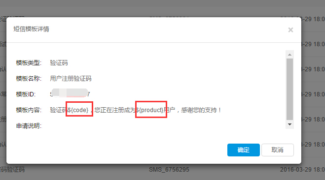 1、复制申请的模板ID到添加短信模板中,参见下图: