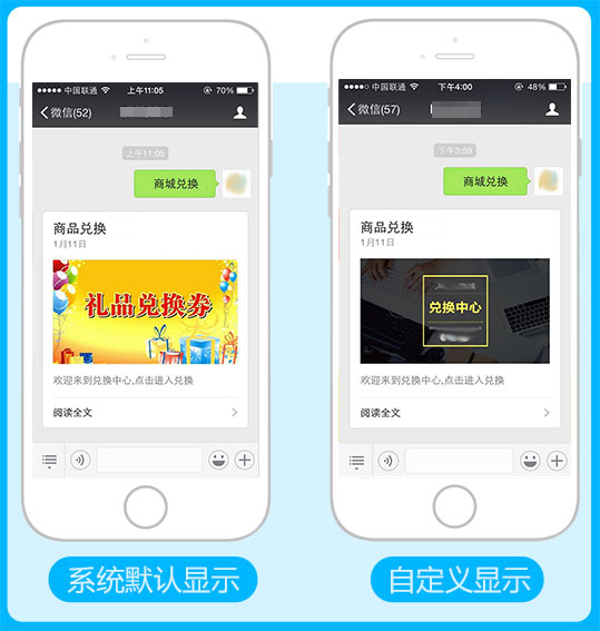 消息图片:可自定义上传,也可使用系统默认的,参见下图: