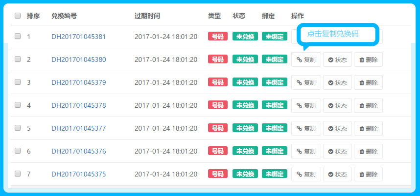 兑换码有效期:可自定义设置兑换码的有效期限,不能超过30天哦