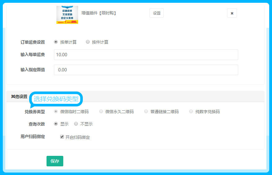 用户扫码绑定:勾选后,扫描的兑换二维码就会绑定到此用户上,其他用户扫描后将无法兑换,反之则不绑定,参见下图: