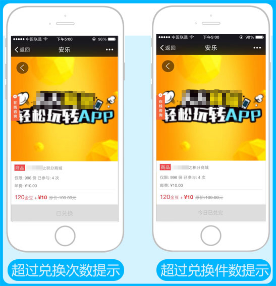 兑换限制:限制每人对此商品兑换的总共次数及此商品每天提供兑换的份数,超过后无法兑换,参见下图: