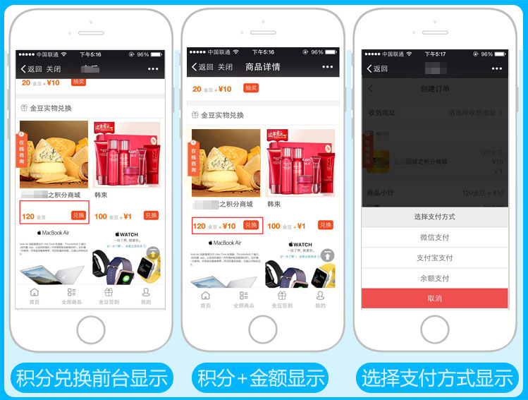 活动消耗:设置兑换此商品需要的积分值,可支持设置积分+金额进行兑换,金额的支付是根据商城开启的支付方式进行选择,参见下图: