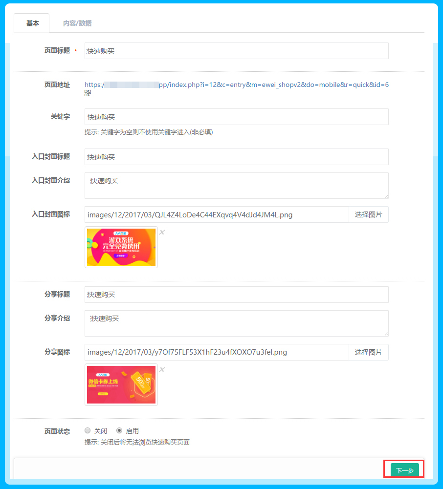 页面地址:系统自动生成,每个页面的地址不同,每个页面系统各自自动生成