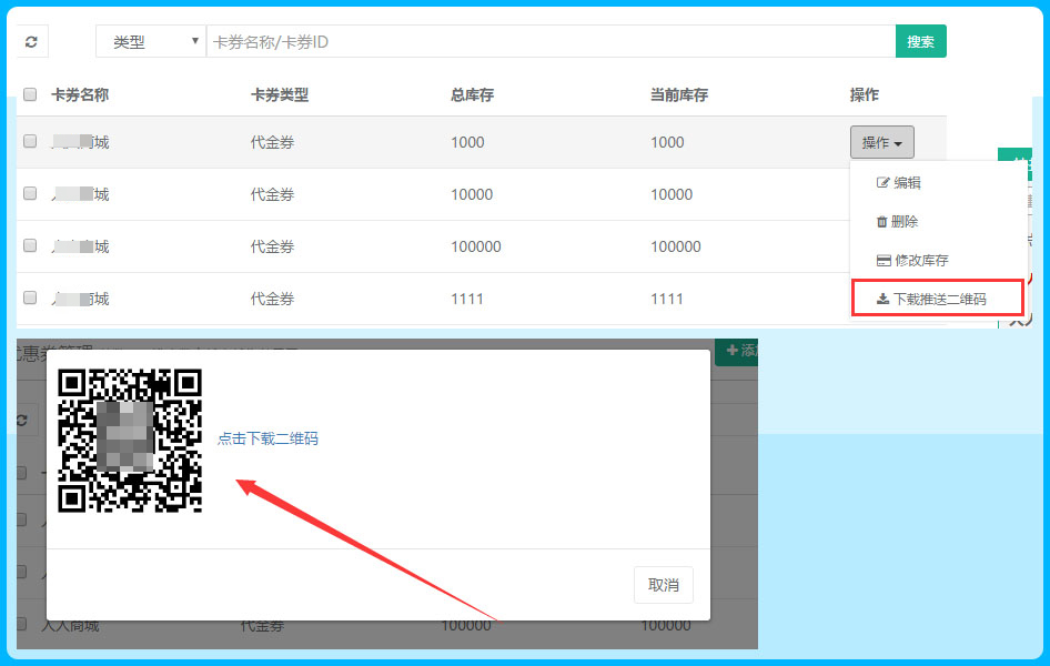 3、通过列表中下载二维码,扫描可获取,参见下图: