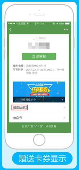 2、通过朋友分享可获得优惠券,前提是必须勾选卡券分享,参见下图: